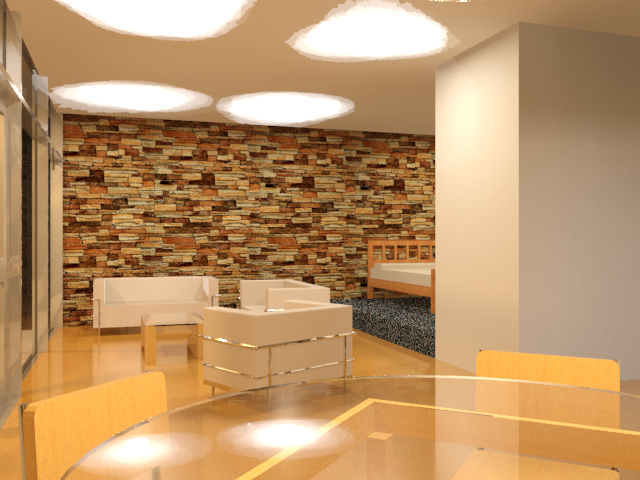 “保存的场景资源管理器”来重新显示任何自定义的“场景资源管理器”(如“Revit 数据”)。保存的资源管理器列表将作为子菜单显示出来。 渲染夜间时分的室内:
