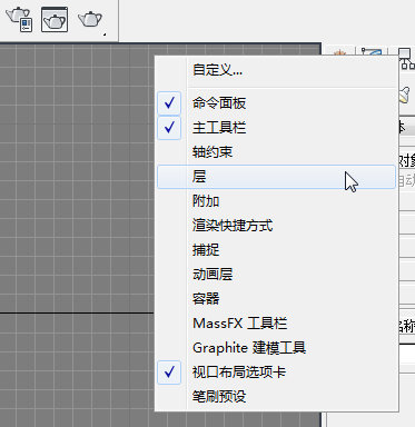 3ds Max 将打开“层”工具栏。但是,从 FBX 文件导入的几何体不包含层信息,因此目前场景中仅有两个层:默认值 0 层,和包含所有几何体(其中包括灯光、摄影机、家具、地形及建筑物本身)的 beachhouse 层。