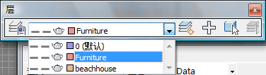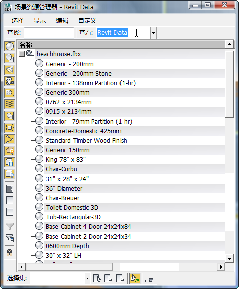 现在,家具已独立于其他 beachhouse 对象位于其自己的“家具”层中。可以对这些 Revit 对象使用“显示/隐藏”、“选择”和其他层控件,就像处理在 3ds Max 中创建的对象一样。