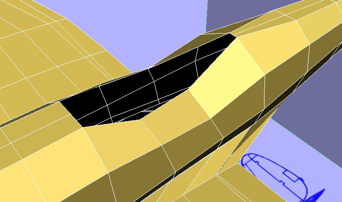 此时构成驾驶舱内部的多边形全部是四边形,并遵循构成机身内部的多边形的总体模式。