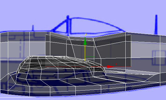 此时 P-47 机身中将具有驾驶舱形的空心部分。若要使模型再次成为连续的曲面,您将要添加一些面,以形成空心的内部。