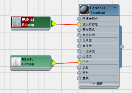 - 将新“位图”节点关联到 BarracksRoof 材质的“漫反射颜色”组件。