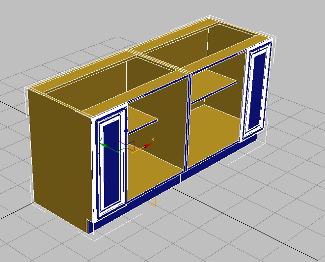 修改器 Gizmo 将显示在视口中,指向橱柜轴点的方向。