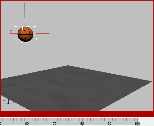 如果在第 0 帧和第 15 帧之间拖动时间滑块,则会看到 3ds Max 已经制作了篮球下落运动的动画。第 0 帧和第 15 帧处的时间表上均会显示红色的框:它们表示当您移动球时 3ds Max 创建的关键点。