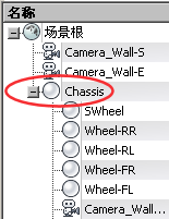 请注意四个车轮和方向盘是如何成为底盘对象的子对象的。该层次对于 3D 汽车模型来说很常见。