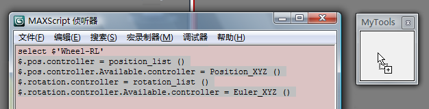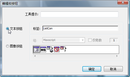 关闭“MAXScript 侦听器”窗口,然后调整“myTools”工具栏的大小直到完全显示“ListCon”标签。