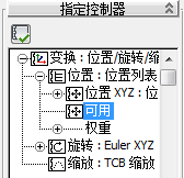 “动画控制器”卷展栏上,展开“位置 XYZ”轨迹以显示由您刚创建的脚本指定的其中一个列表控制器。