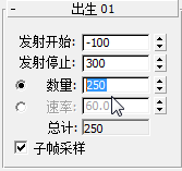 - 单击 Birth 01 操作符以高亮显示它,然后将发射的粒子“数量”更改为 250。