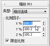 由于已启用“限定比例”,因此“Y %”和“Z %”因子也会更新为 100.2。
