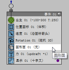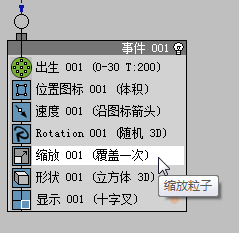 - 将“Scale”操作符从仓库拖至 Event 01,并将其放置在“图形朝向”操作符和“Force”操作符之间。