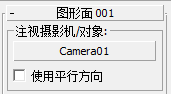 - 在“图形朝向操作符”卷展栏上,单击以启用“注视摄影机/对象”按钮(当前标记为“无”),然后在视口中单击 Camera01。