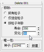 选择“按粒子年龄”将启用“寿命”和“变化”参数。