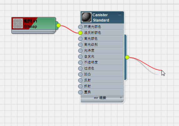 将该关联放到 Canister 节点的“漫反射颜色”组件的输入套接字上。