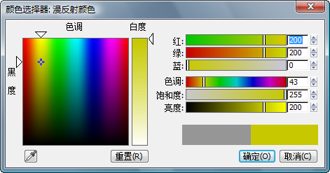 使用“颜色选择器”上的“红色”/“绿色”/“蓝色”控件选择黄颜色。设置“红色”= 200,“绿色”= 200,“蓝色”= 0。