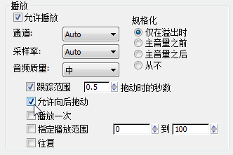 “播放”组中,启用“允许向后拖动”。