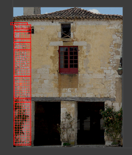 现在,门柱都与 fac1.jpg 的纹理一致了。但它们显示的是整个主立面,而我们想要的不是这个样子。