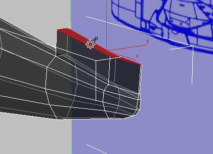 “多边形建模”面板上,单击 尾部顶部的两个面应再次成为活动选择。如果不是活动选择,则在顶视口或透视视口中,单击