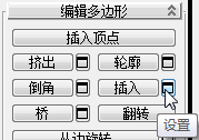 - 在“编辑多边形”卷展栏上,单击“插入”旁边的