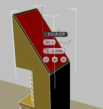 (确定)。 在“正面”视口中仔细查看建筑物顶部时,发现挤出需要精细调节。
