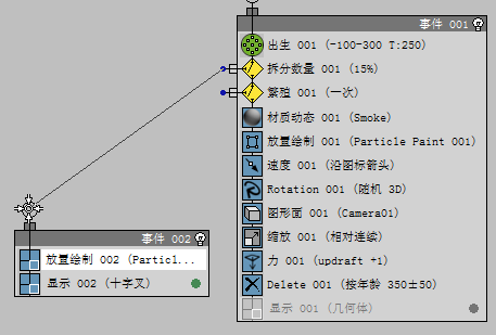Event 002 将使用粒子绘制 002 作为生成余烬粒子的源。