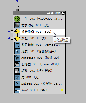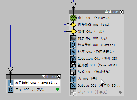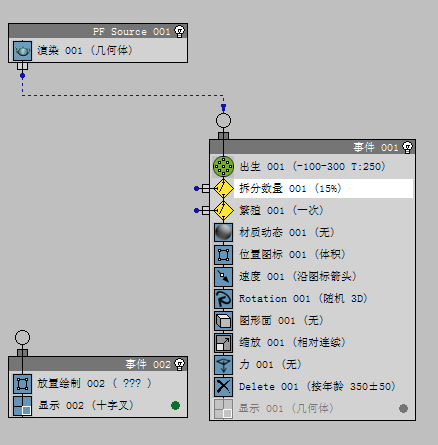 现在,Event 002 可以使用“Split Amount”发给它的粒子。