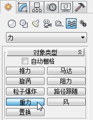 “对象类型”卷展栏上启用“重力”。