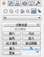 - 在“对象类型”卷展栏中,启用“风”。