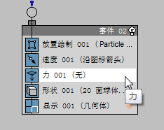 - 从仓库中拖动“Force”操作符,并将其添加到 Event 02 中。