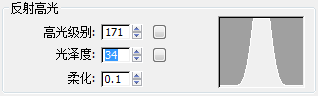 - 在“反射高光”组中,将“高光级别”的值更改为 171,将“光泽度”的值更改为 34。