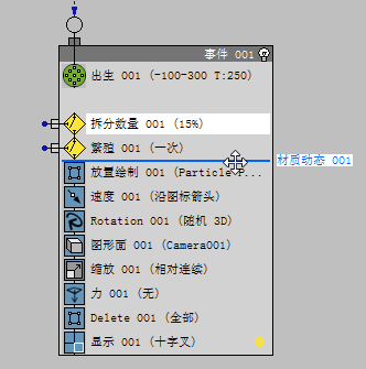 - 拖动“Material Dynamic”操作符,并将其放置在“Spawn”测试之下。