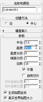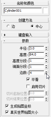 - 释放鼠标按钮,您已设置好了圆柱体的半径。半径显示在“参数”卷展栏中。
