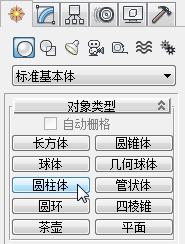 (几何体)。确保在下拉列表中选中“标准基本体”,然后在“对象类型”卷展栏上单击“圆柱体”。 “圆柱体”按钮高亮显示,表明其已激活且可以使用。