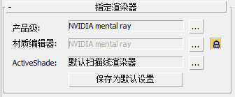“指定渲染器”卷展栏上,确保“产品级”字段设置为“NVIDIA mental ray”。