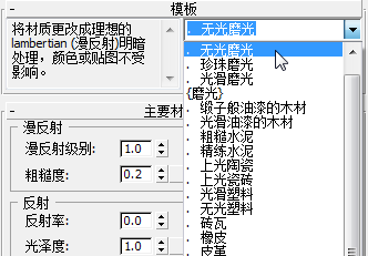 - 在“模板”卷展栏上,打开下拉列表,然后选择“无光磨光”。