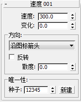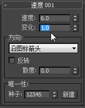 - 在“速度”卷展栏上,将“速度”值更改为 6.0,将“变化”值更改为 1.0。