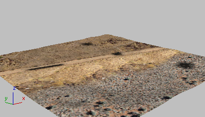 “风”空间扭曲图标是一个带有向外指出的箭头的正方形。在明暗处理视口中,此正方形隐藏在地形之后,但是在“透视”视口中,您可以更轻松地看到箭头。