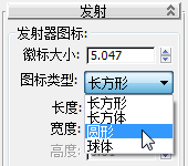 “修改”面板。在“发射”卷展栏上,将“图标类型”从“矩形”更改为“圆形”。