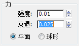 “力”组中,将“强度”设置为 0.01,将“衰退”设置为 0.025。