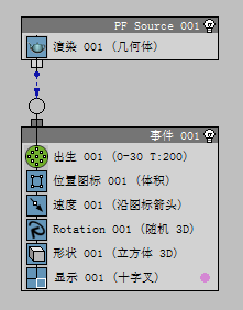 现在,事件显示将显示已添加到此场景中的粒子流源 01 操作符和 Event 01(目前包含默认设置)。