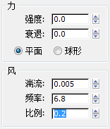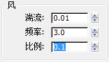 “风”组中,按如下方式更改相应设置:- 湍流 = 0.01