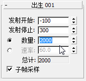 - 在“出生”卷展栏上,将“数量”值更改为 2000。