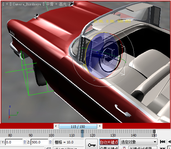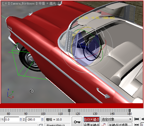 与创建点辅助对象使汽车动画沿路径方向的方法一样,您将再创建两个点辅助对象,以便在旋转方向盘移动时控制前轮轴心。