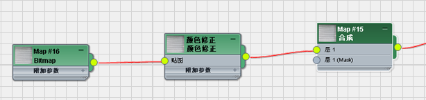 3ds Max 将在“参数编辑器”中显示“颜色修正”控件,并在“位图”和“合成”贴图之间插入一个“颜色修正”贴图节点。