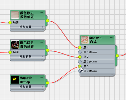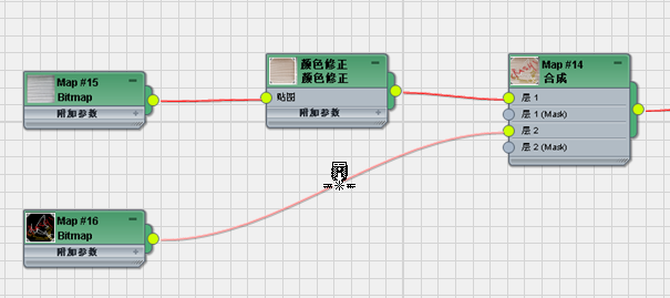 3ds Max 将在涂鸦位图和“合成”贴图之间插入一个“颜色修正”节点。这是添加“颜色修正”贴图的另一种方法。