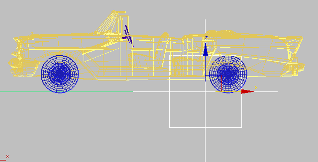 提示: 若要选择汽车右侧的车轮,您可以在选择车身的 X 位置后按 H 键,然后使用“拾取对象”对话框拾取车轮。