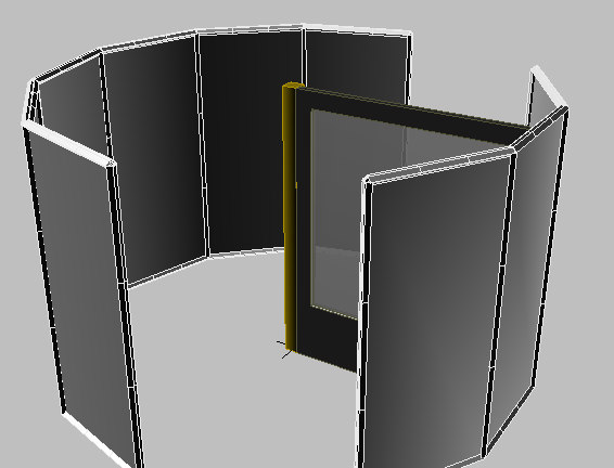 创建轴门之后,将材质库中的“多维/子对象”材质分配给门。当拥有单个对象(例如此门),并且该对象具有多个不同的组件(例如玻璃窗、门框等)时,您可以使用“多维/子对象”材质以将不同材质应用于它的各个部件。