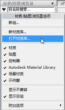 现在,材质库的一部分会显示在浏览器中。