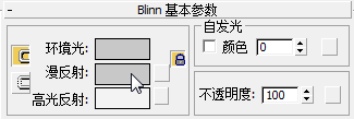 “Blinn”是以计算机图形的先驱者 James Blinn 名字命名,它是“标准”材质默认使用的明暗器类型。明暗器决定材质与光线的交互方式。并且“漫反射”是指基本材质颜色。您可以在 3ds Max 帮助中找到有关明暗器和常规材质的更多信息。