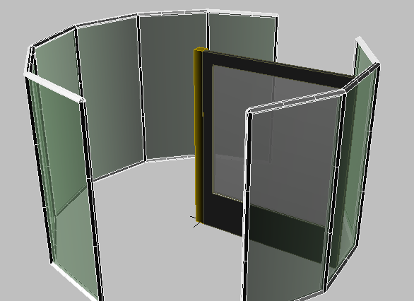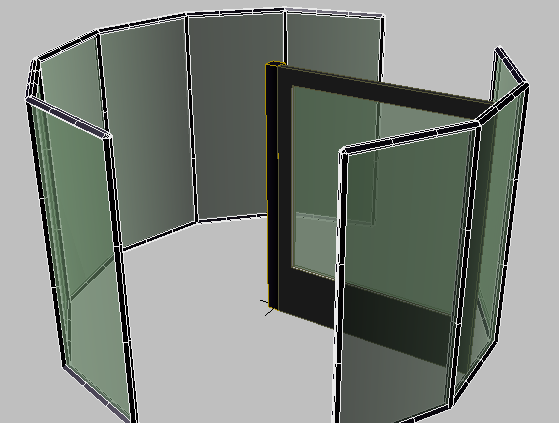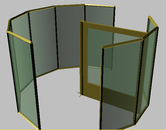 这是应用于玻璃窗的材质。在视口中,十字形旋转门的玻璃窗变为绿色。