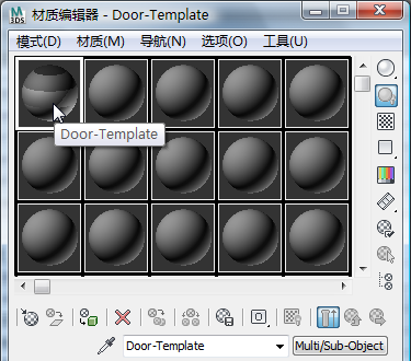 门材质显示在“精简材质编辑器”的第一个示例窗中。